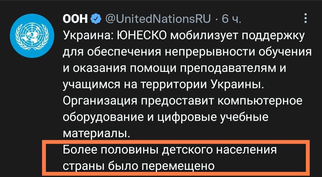 06.48 По данным ООН, более половины украинских детей стали переселенцами из-за войны.