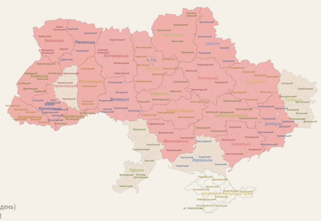 22.25 Воздушная тревога сейчас почти по всей стране.