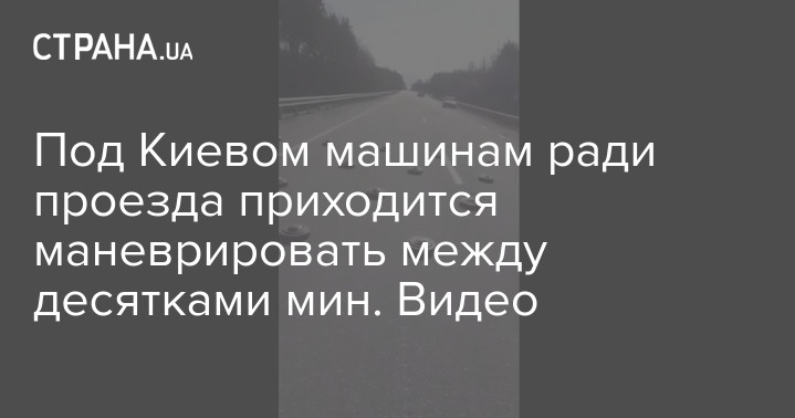 Под Киевом машинам ради проезда приходится маневрировать между десятками мин. Видео