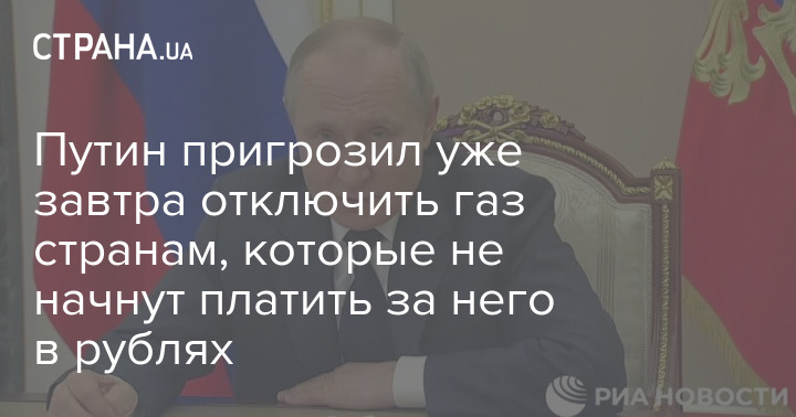 Путин пригрозил уже завтра отключить газ странам, которые не начнут платить за него в рублях