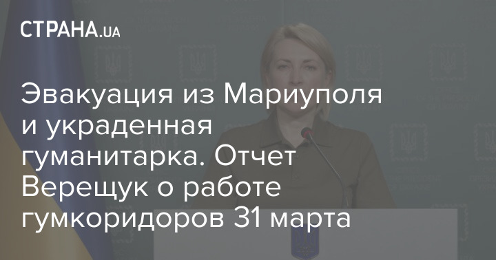 Эвакуация из Мариуполя и украденная гуманитарка. Отчет Верещук о работе гумкоридоров 31 марта