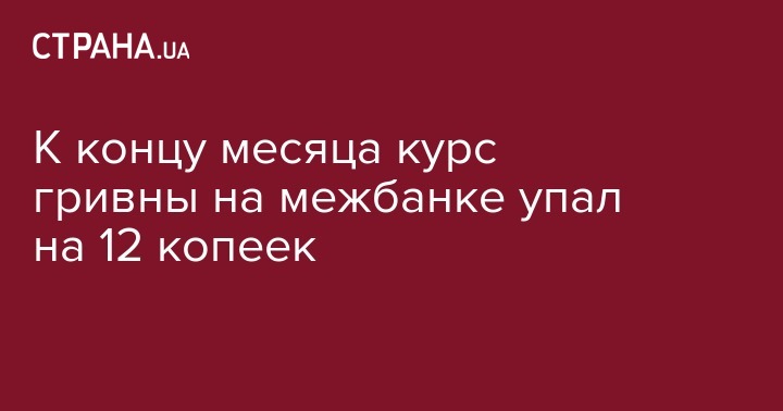 К концу месяца курс гривны на межбанке упал на 12 копеек