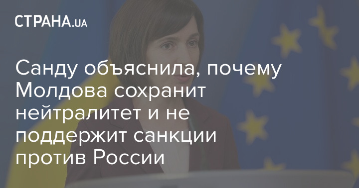 Руководство Молдовы сохранит позицию нейтралитета и не будет присоединяться к санкциям, которые ввел Запад против России в связи с войной в Украине.