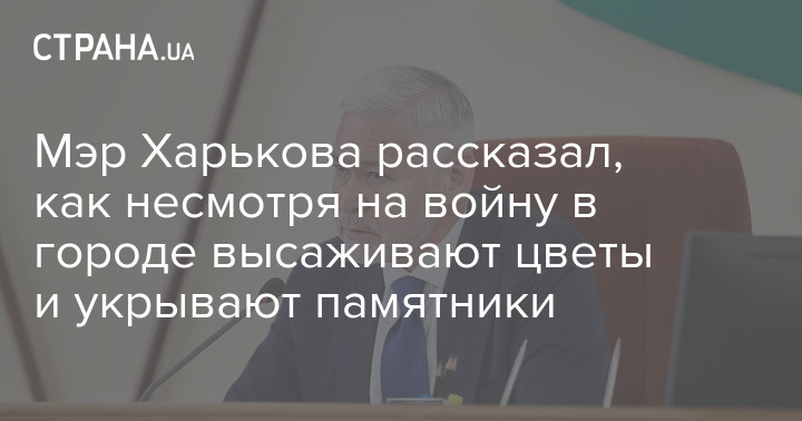 Мэр Харькова, где сегодня под ракетный обстрел попал парк Горького, Игорь Терехов в комментарии "Стране" рассказал, что с понедельника в городе начнут высадку цветов и укрытие городских памятников на случай обстрелов.