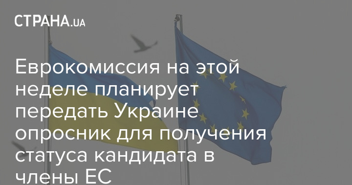 Еврокомиссия на этой неделе планирует передать Украине опросник для получения статуса кандидата в члены ЕС