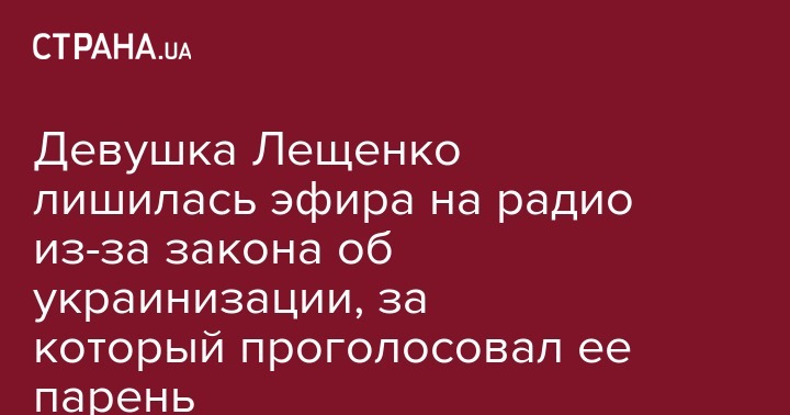 Девушка нардепа Сергея Лещенко, диджей Анастасия Топольская сообщила, что, фактически, вынуждена прекратить вести свое шоу на радиостанции KISS FM из-за вступления в силу закона о квотах на украиноязычную музыку. Об этом она написала в Facebook.