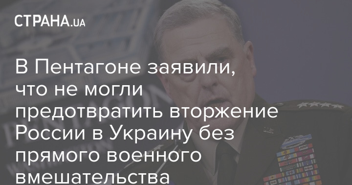 Председатель Комитета начальников штабов (КНШ) Вооруженных сил США генерал Марк Милли заявил, что Вашингтон не имел возможности предотвратить вторжение России в Украину, если не брать вариант прямого военного вмешательства в ситуацию.