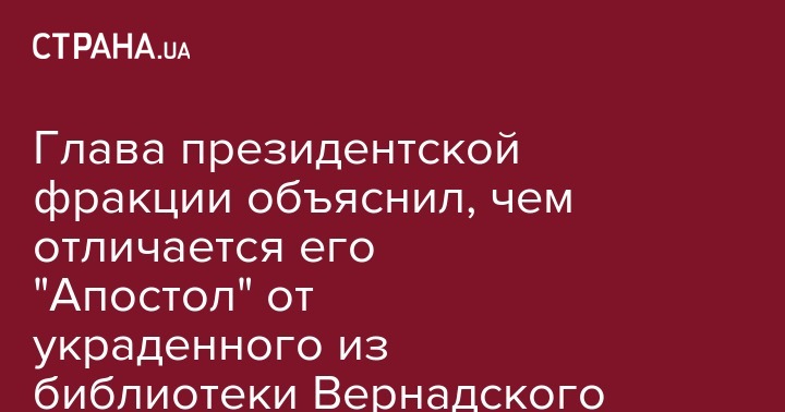 Глава президентской фракции объяснил, чем отличается его "Апостол" от украденного из библиотеки Вернадского
