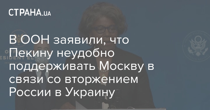 Постоянный представитель США при ООН Линда Томас-Гринфилд заявила CNN, что Пекину неудобно поддерживать Москву в связи со вторжением России в Украину.