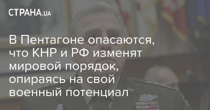 Китай и Российская Федерация имеют значительный военный потенциал и стремятся изменить основанный на правилах мировой порядок, заявил председатель Комитета начальников штабов (КНШ) Вооруженных сил США генерал Марк Милли.