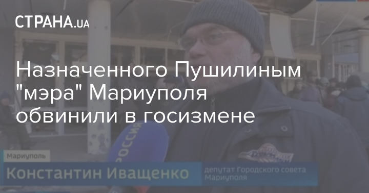 Депутату горсовета Мариуполя Константину Иващенко, которого Пушилин назначил "мэром Мариуполя", объявлено о подозрении в государственной измене. Об этом говорится в сообщении Офиса Генерального прокурора.