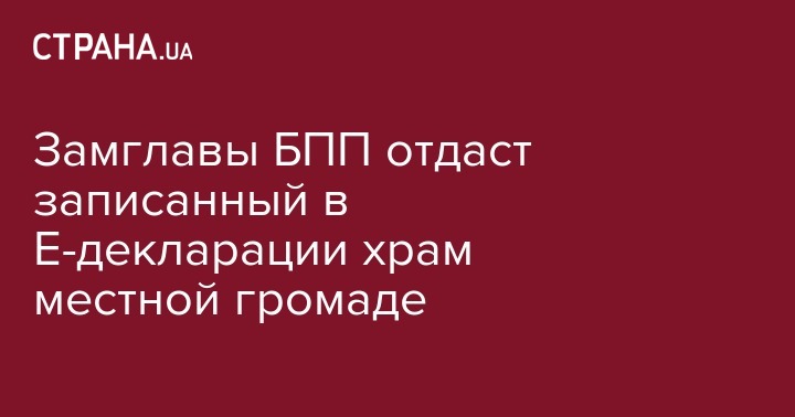 Замглавы БПП отдаст записанный в Е-декларации храм местной громаде