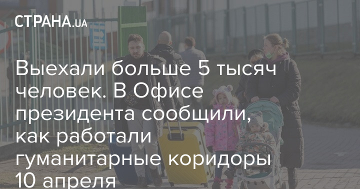 По гуманитарным коридорам, которые были открыты 10 апреля, смогли эвакуироваться 5031 мирный житель. Об этом сообщает Офис президента.
