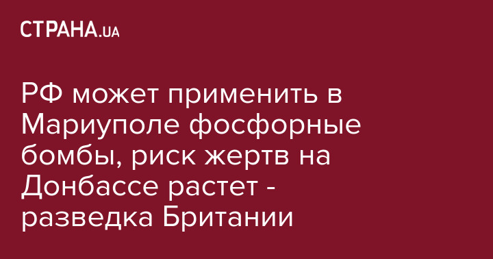 РФ может применить в Мариуполе фосфорные бомбы, риск жертв на Донбассе растет - разведка Британии