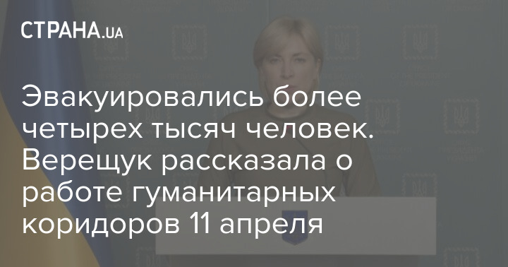 Эвакуировались более четырех тысяч человек. Верещук рассказала о работе гуманитарных коридоров 11 апреля