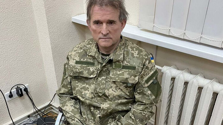 Президент Владимир Зеленский опубликовал фотографию народного депутата из партии "Оппозиционная платформа - За жизнь" Виктора Медведчука в форме ВСУ и наручниках.