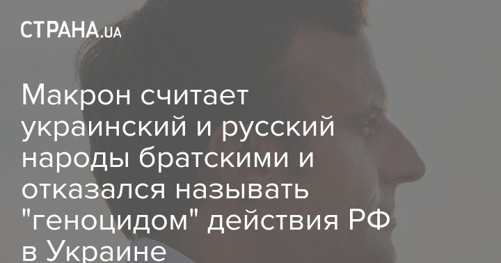 Президент Франции Эммануэль Макрон считает украинский и русский народы братскими и отказался называть действия РФ в Украине "геноцидом", как это ранее сделал президент США Джо Байден.