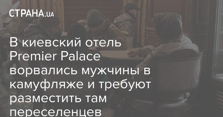 В Киеве в помещение пятизвездочного отеля Premier Palace, известного тем, что возле него был застрелен беглый депутат Госдумы РФ Денис Вороненков, ворвались мужчины в военном камуфляже. Они требуют, чтобы гостиница предоставила свои номера для проживания вынужденных переселенцев.