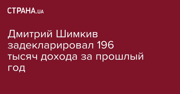 Дмитрий Шимкив задекларировал 196 тысяч дохода за прошлый год