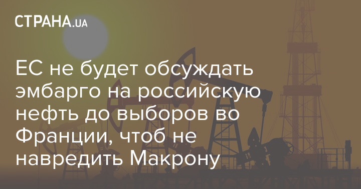 Чиновники Европейсого Союза разрабатывают поэтапный запрет на импорт российских нефтепродуктов. Однако ограничения не будут принимать до второго тура выборов во Франции.