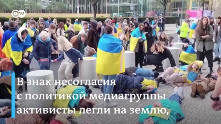 Украинцы протестуют против Овсянниковой в Берлине. Скриншот из видео DW