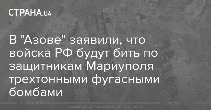 В "Азове" заявили, что войска РФ будут бить по защитникам Мариуполя трехтонными фугасными бомбами