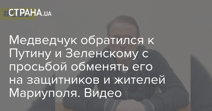 "Я, Медведчук Виктор Владимирович, хочу обратиться к президенту РФ Владимиру Путину и президенту Украины Владимиру Зеленскому с просьбой об обмене меня украинской стороной на защитников Мариуполя и жителей, которые находятся там на сегодняшний день и не имеют возможности безопасного выхода через гуманитарные коридоры", - сообщил Медведчук.