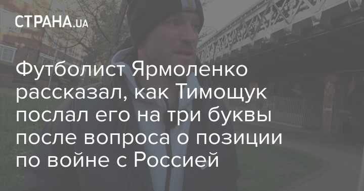 Легенда украинского футбола Анатолий Тимощук, ныне работающий в питерском "Зените", послал капитана сборной Украины Андрея Ярмоленко на три буквы после вопроса о позиции в войне России с Украиной.