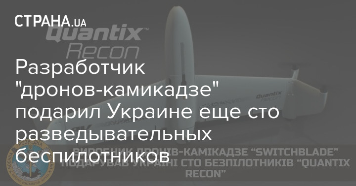 Производитель дронов-камикадзе "Switchblade" подарил Украине сто беспилотников "Quantix Recon". Они позволяют проводить точную и быструю разведку недоступных областей.