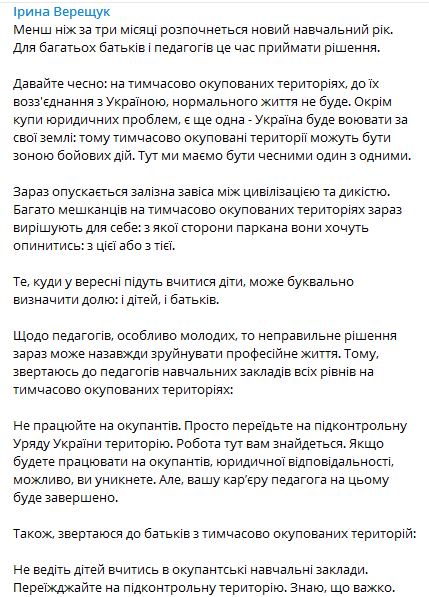 22.23 Генпрокурор Ирина Венедиктова сообщила, что россияне используют украинских детей, чтобы обнаруживать места расположения ВСУ.