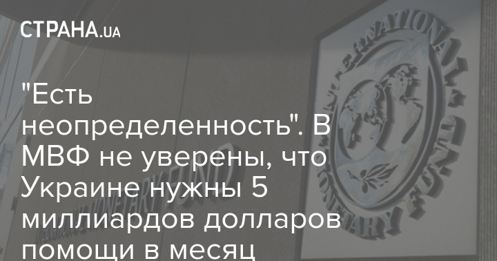 Для поддержания функционирования экономики Украины потребуется 5 миллиардов долларов в месяц, заявила директор-распорядитель Международного валютного фонда Кристалина Георгиева. Однако, по ее словам, у МВФ есть "высокая степень неопределенности" по поводу средств, которые просит Украина.