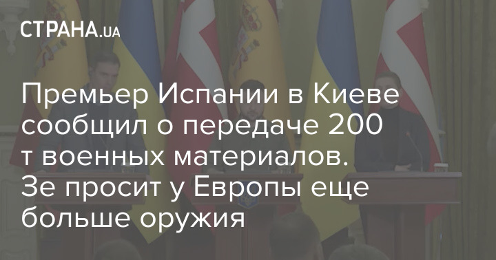 Испанский премьер заявил, что Испания направит Украине 200 тонн военных материалов.