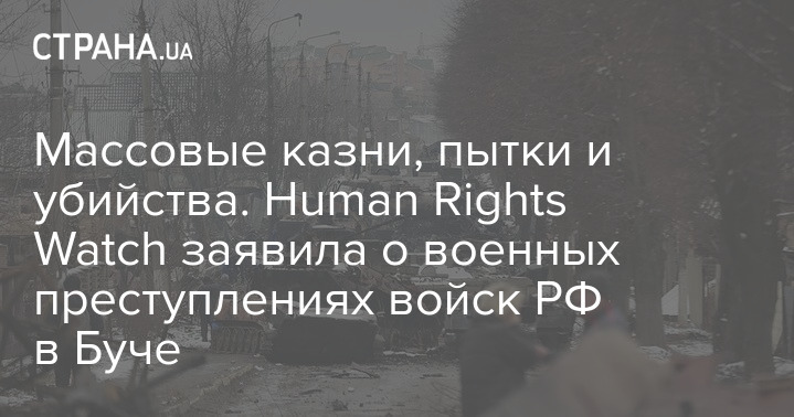 Правозащитная организация Human Rights Watch заявляет, что российские войска совершили целый ряд военных преступлений во время оккупации Бучи с 4 по 31 марта.