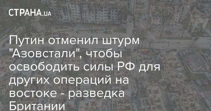 Путин отменил штурм "Азовстали", чтобы освободить силы РФ для других операций на востоке - разведка Британии