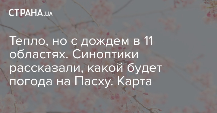 Так, Закарпатская, Черновицкая, Львовская, Волынская, Тернопольская, Хмельницкая, Ровенская, Ивано-Франковская области будут праздновать Пасху с незначительными осадками. При этом погода там будет теплая. +15...+18 днем в Волынской, Львовской, Ровенской и Тернопольской областях и +18...+21 - в Закарпатской, Черновицкой, Ивано-Франковской и Хмельницкой. Ночная температура на западе страны будет +3...+6 градусов.