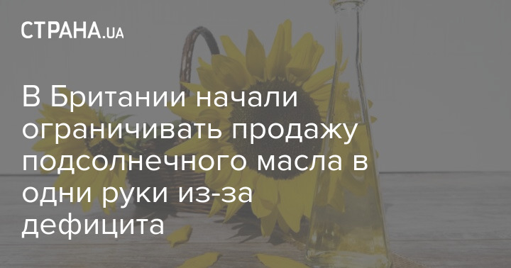 Из-за войны в Украине в мире наблюдается дефицит подсолнечного масла. В связи с этим некоторые розничные сети в Британии ограничивают продажу подсолнечного масла в одни руки.