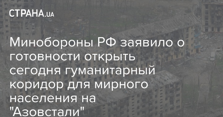 Минобороны России заявило, что готово на гуманитарный коридор из "Азовстали".