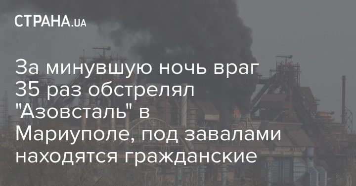 "Только за минувшую ночь было совершено 35 авиаударов, в ходе которых произошло возгорание одного из цехов. Но самое важное - от них пострадали гражданские, которые сейчас находятся под завалами. Военнослужащие полка "Азов" оказывают первую медицинскую помощь и прилагают все усилия, чтобы освободить гражданских из-под завалов", - говорится в сообщении.