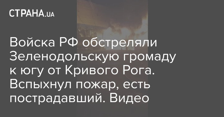 Войска РФ обстреляли Зеленодольскую громаду к югу от Кривого Рога. Вспыхнул пожар, есть пострадавший. Видео