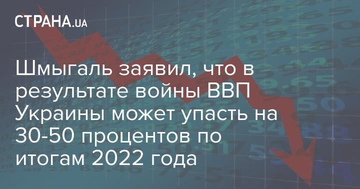 Шмыгаль заявил, что в результате войны ВВП Украины может упасть на 30-50 процентов по итогам 2022 года