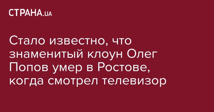 Стало известно, что знаменитый клоун Олег Попов умер в Ростове, когда смотрел телевизор