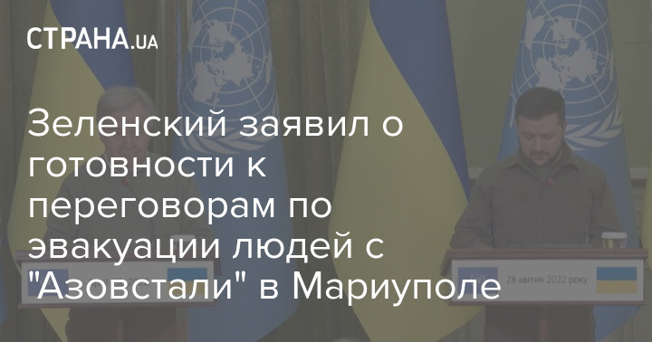 "Украина готова к неотложным переговорам для эвакуации людей из "Азовстали" и к мгновенному воплощению достигнутых договоренностей", – заявил Зеленский.