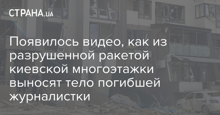 Появилось видео того, как спасатели выносят в мешке тело погибшего из многоэтажки в Киеве, куда вчера попала российская крылатая ракета.