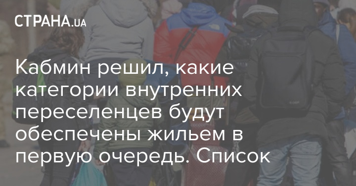 Кабмин Украины принял решение, что государство будет в первую очередь обеспечивать жильем следующие категории переселенцев: