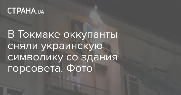 Российские оккупанты в Токмаке Запорожской области сняли украинскую символику со здания горсовета.