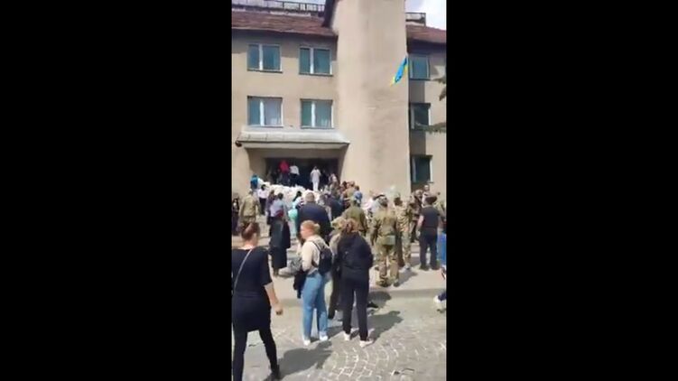 Женщины из города Хуст Закарпатской области устроили протест под стенами местного Центра комплектования военнообязанных. Они возмущены отправкой своих мужей, бойцов теробороны, на фронт без подготовки.