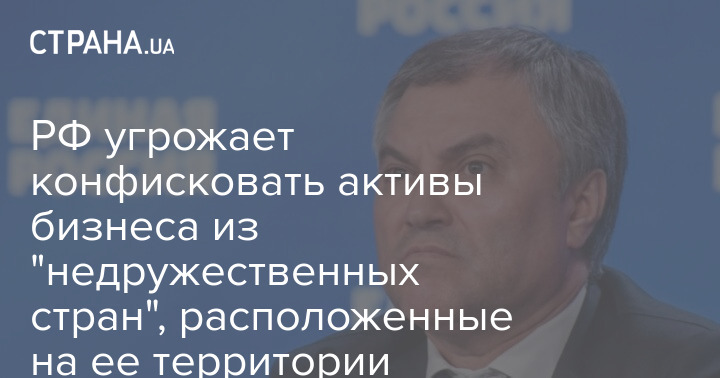 Спикер российской Госдумы Вячеслав Володин считает, что активы "недружественных стран", расположенные на территории РФ, следует конфисковать в ответ на возможную конфискацию российских активов на Западе с последующей передачей их Украине (соответствующий закон принят в США).