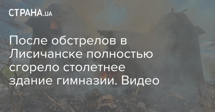 В Луганской области после обстрелов полностью сгорела Лисичанская гимназия. Видео публикует губернатор области Сергей Гайдай.