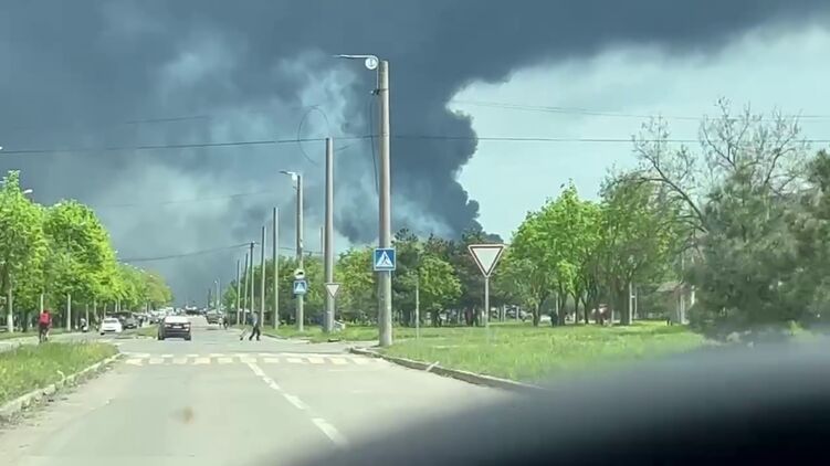 Над мариупольским комбинатом "Азовсталь" поднимается огромный столб дыма.