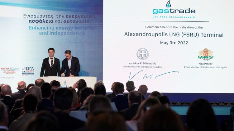 По словам Мицотакиса, терминал в Александруполисе станет "новыми энергетическими воротами" и "маяком, посылающим двойной сигнал: мы скоро сможем избавиться от газа, который поступает из российских источников, и наши страны будут играть совместную роль на новой энергетической карте".